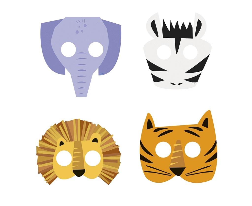 Opakowanie Maski papierowe Animal Safari 4 wzory 8 szt.