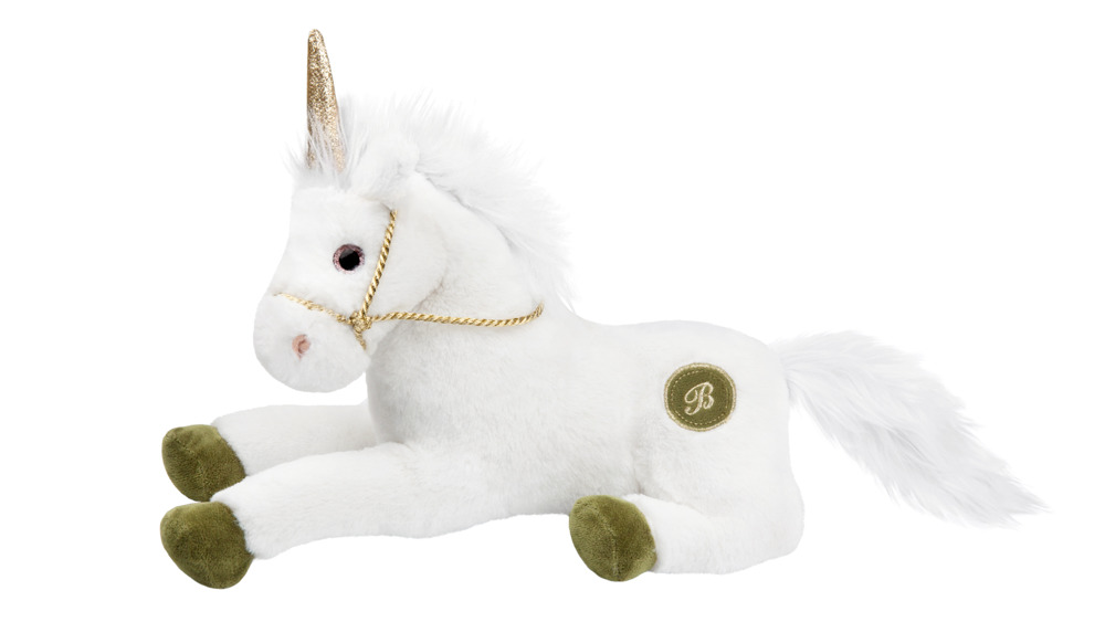 Jednorożec o imieniu Beatrice w kolorze białym z zielonymi elementami.