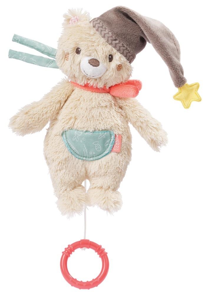 Maskotka z pozytywką, Mały miś Bruno, z kolekcji: Bruno. Zabawka, która sprawi że wszystkie sny będą najpiękniejsze! Miś z kolekcji Bruno skradnie serce zarówno Tobie, jak i twojemu maluszkowi. Jest wykonany z wyjątkowo miękkiego oraz delikatnego dla skóry dziecka materiału. Dodatkowo miś wyposażony jest w pozytywkę. Odtwarzana melodia to znana kołysanka, która uspokoi, wyciszy oraz uśpi twoje dziecko. Mechanizm pozytywki może zostać wyjęty z misia przez zabezpieczający suwak. Maskotkę można powiesić np. na barierce łóżeczka, wózka czy nosidełka. Zabawka wykonana została z materiałów wysokiej jakości, jest przeznaczona dla wszystkich maluszków już od urodzenia. Działa kojąco na dziecko, wyciszając i pomagając mu zasnąć. Do zawieszenia na łóżeczku, wózku nosidełku itp. Wyjmowany mechanizm pozytywki. Rozwija zmysły wzroku i słuchu. Różnorodne faktury materiału stymulują dotyk. Można prać. Wszystkie zabawki niemieckiej marki FEHN są bezpieczne dla dzieci od 0 lat. Wykonane są z najlepszej jakości materiałów. Spełniają normy EN71, CE, badane w instytutach Stiftung Warentest lub kotest.