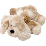 Pies Roddy to leżący pluszak w kolorze beżowym, z urocza kokardką po szyją.
