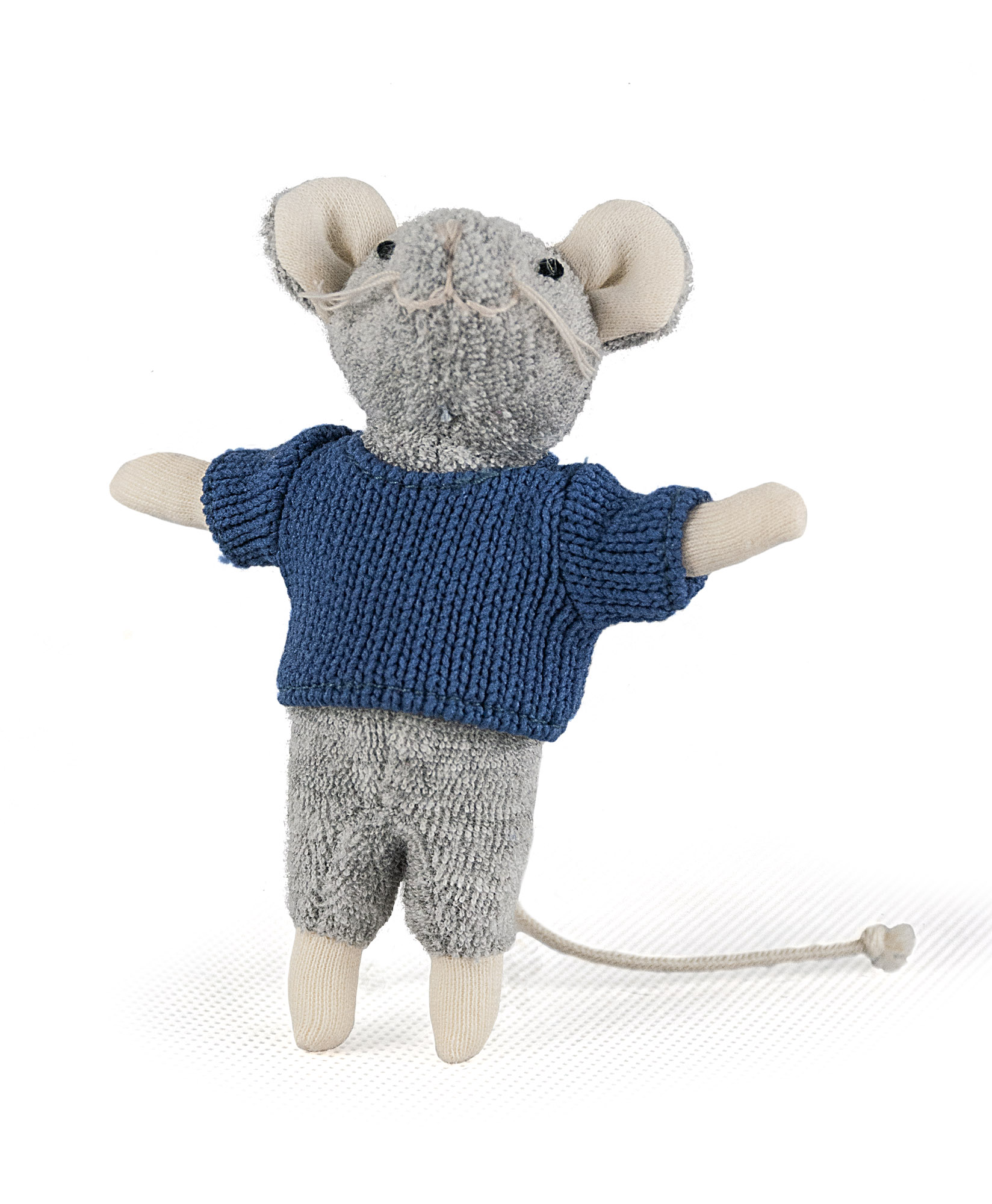 Sam - oryginalna maskotka z Mysiego Domku. Mierzy 12 centymetrów i ma niebieski wełniany sweterek.