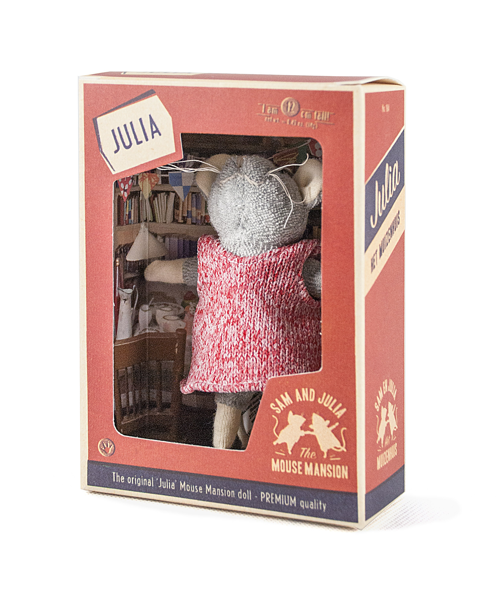 Julia - oryginalna maskotka z Mysiego Domku. Mierzy 12 centymetrów i nosi czerwoną dzianinową sukienkę.