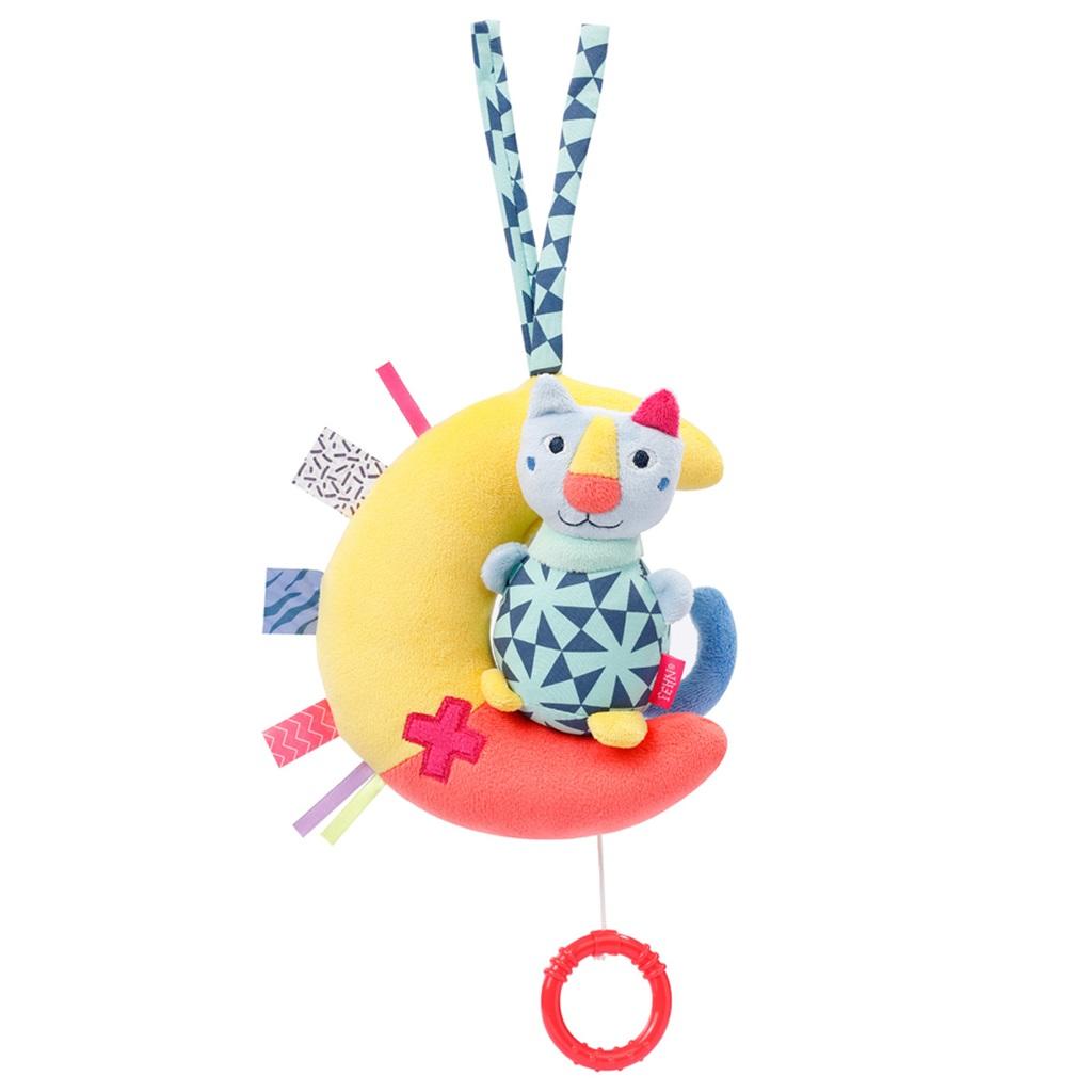 Zabawka, która sprawi że wszystkie sny będą najpiękniejsze! Wesoły Kotek skradnie serce zarówno Tobie, jak i twojemu maluszkowi. Wykonana z wyjątkowo miękkiego oraz delikatnego dla skóry dziecka materiału. Dodatkowo wyposażona jest w pozytywkę. Po pociągnięciu za czerwony pierścień, odtwarza melodię znanej kołysanki, która uspokoi, wyciszy oraz uśpi twoje dziecko. Maskotka posiada wstążeczkę pozwalającą powiesić ją np. na barierce łóżeczka, wózka czy nosidełka. Zabawka wykonana została z materiałów wysokiej jakości, jest przeznaczona dla wszystkich maluszków już od urodzenia.Działa kojąco na dziecko, wyciszając i pomagając mu zasnąć.Do zawieszenia na łóżeczku, wózku nosidełku itp.Specjalnie zaszyte końcówki zachęcają do ssania, targania i ściskania, co rozwija zdolności motoryczne.Ręcznie uruchamiana pozytywka nie wymaga stosowania baterii.Rozwija zmysły wzroku i słuchu.Różnorodne faktury materiału stymulują dotyk.Można prać w temp. 30C, po wcześniejszym usunięciu mechanizmu pozytywki.Wymiary produktu: 19 cm x 16 cm x 6 cm.Wszystkie zabawki niemieckiej marki FEHN są bezpieczne dla dzieci od 0 lat.Wykonane są z najlepszej jakości materiałów.Spełniają normy EN71, CE, badane w instytutach Stiftung Warentest lub kotest.