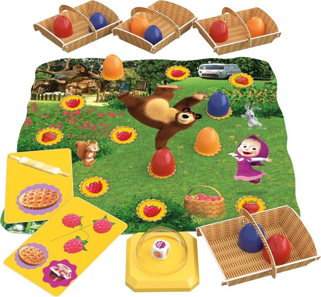 Przeżyj z przyjaciólmi przygodę, poszukując pysznych owoców! Masza uwielbia przyrządzać owocowe ciastka i dżemy - mimo, że nie za każdym razem wychodzą jej idealnie... Pomóż jej i misiowi nazbierać owoców. Musisz jednak uważać na muchomory! Zawartość: 12 plastikowych owoców 12 tekturowych dysków 12 kart kostka Pop-O-Matic 4 koszyczki na owoce zasady gry Liczba graczy 2-4 Wiek 3+