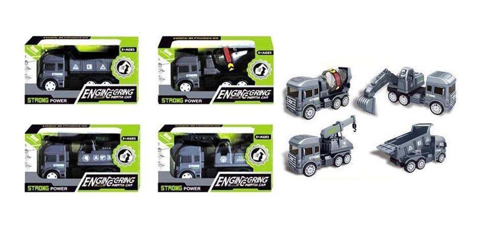 Samochód ciężarówka betoniarka/dźwig/wywrotka/koparka do zabawy w plac budowy. Zabawka zapakowana jest w kartonowe opakowanie z przezroczstym okienkiem. Produkt dla dzieci od 3 roku życia. Podane wymiary stanowią wymiar opakowania.#&