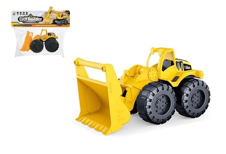 Pojazd budowlany - koparka/spycharka dla chłopców. Przydatny podczas zabawy w plac budowy. Zabawka zapakowana w przezroczysty worek. Produkt dla dzieci od 3 lat. Podane wymiary stanowią wymiar opakowania.