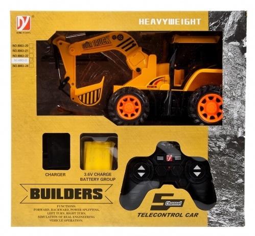 W zestawie znajduje się koparka, pilot w formie joisticka oraz ładowarka. Maszyna porusza się we wszystkich kierunkach, symuluje działanie prawdziwych maszyn budowlanych. Zabawka wykonana z plastiku. Wymagane zasilanie 1 baterią 3,6V - załączoną do zstawu oraz 2 bateriami AA 1,5V - nie załączonymi do zestawu. Produkt przeznaczony dla dzieci w wieku: 3+.