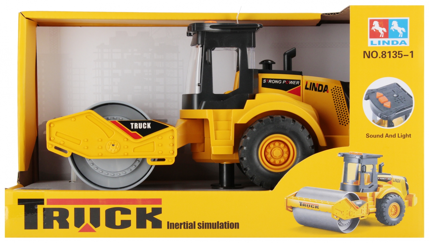 Zalety produktu walec posiada funkcję pull and back dzięki czemu po pchnięciu pojazdu do przodu kontynuuję jazdę samodzielnie, posiada ruchome elementy- obracany uchwyt z walcem, posiada efekty świetlne oraz dźwiękowe.