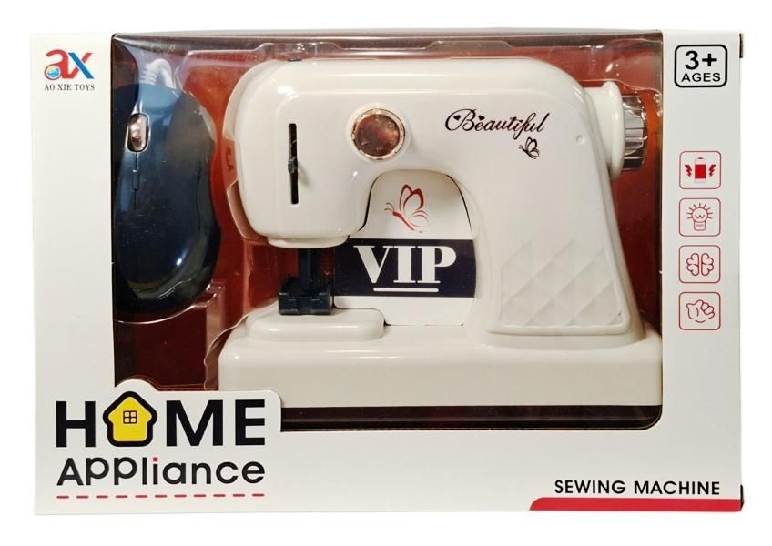 Zabawka maszyna do szycia z pedałem, w klasycznej kolorystyce. Pozwala na kreatywną zabawę w szycie. Zapakowana w kartonowe pudełko. Zabawka przeznaczona dla dzieci od lat 3. Produkt działa na baterie typu AA. Baterie nie są załączone do zabawki. Podane wymiary stanowią wymiar opakowania.