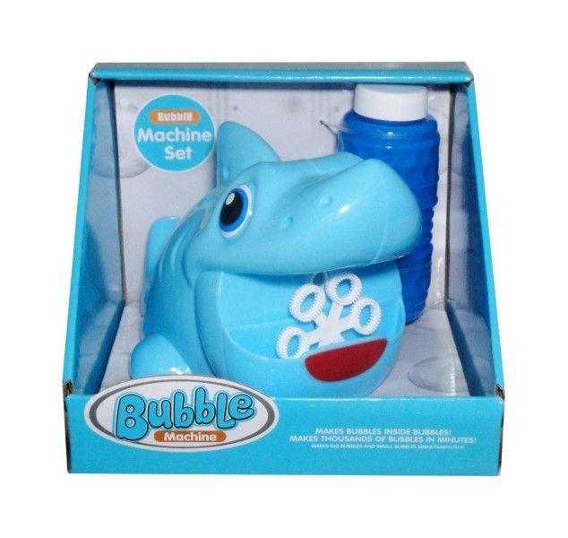 Kolorowa maszynka rekin wraz z płynem do wytwarzania baniek mydlanych. Zabawka działa na baterie typu AA. Baterie nie są załączone do zabawki. Podane wymiary stanowią wymiar opakowania. Zabawka zapakowana w kartonowe opakowanie z okienkiem.