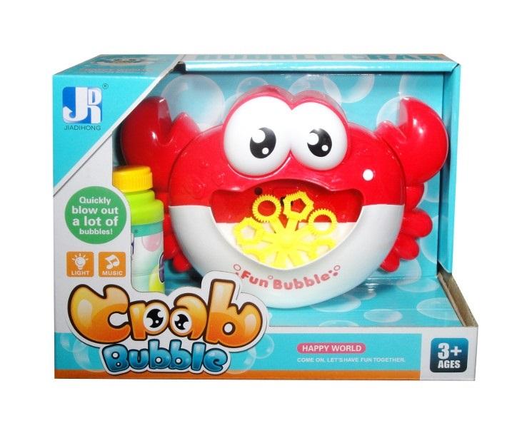 Kolorowa maszynka krab wraz z płynem do wytwarzania baniek mydlanych. Krab świeci światełkiem oraz gra wesołe melodie. Zabawka działa na baterie typu AA. Baterie nie są załączone do zabawki. Zabawka dla dzieci od 3 lat. Produkt występuje w kilku wersjach kolorystycznych, wybierany losowo. Cena dotyczy jednej sztuki.