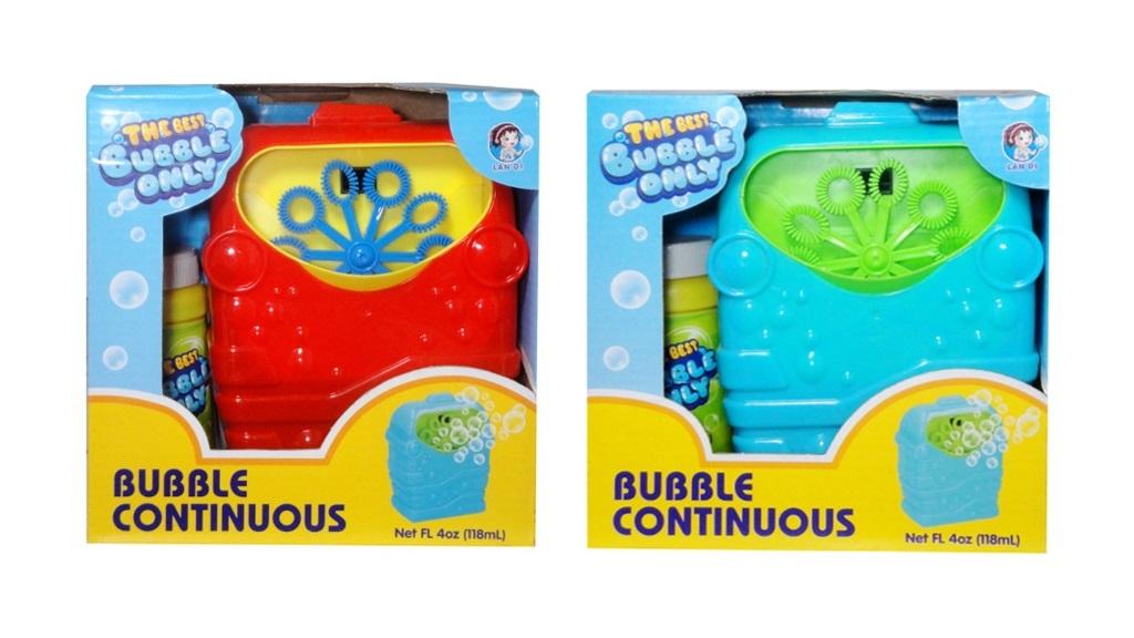 Kolorowa maszynka wraz z płynem do wytwarzania baniek mydlanych. Zabawka działa na baterie typu AA. Baterie nie są załączone do zabawki. Produkt występuje w kilku wersjach kolorystycznych, wybierany losowo. Cena dotyczy jednej sztuki. Zabawka dla dzieci od 3 lat.