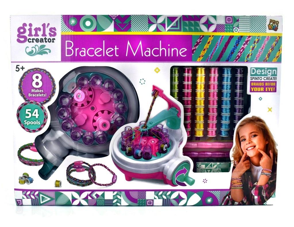 Maszyna do zaplatania kolorowych bransoletek to świetna zabawka dla dziewczynek, które uwielbiają kreatywnie spędzać czas. Można tworzyć bransoletki w najróżniejszych wzorach, które umożliwiają aż 54 kolorowe szpulki z kordonkiem. Dziewczynki mogą tworzyć piękne bransoletki przyjaźni. Dzięki maszynce w szybki i łatwy sposób można zrobić unikatowe bransoletki.