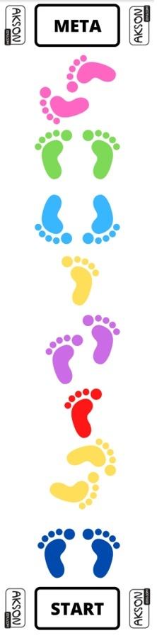 Rozmiar maty to ok. 45x200 cm. Dzięki kolorowym stópkom gra jest atrakcyjna wizualnie.