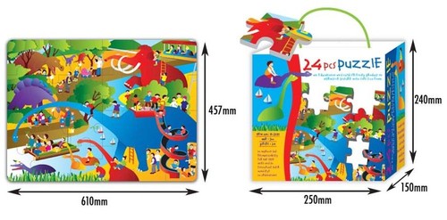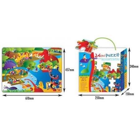 Puzzle edukacyjne wykonane są z miękkiej i miłej w dotyku pianki. Zabawa nimi pomaga rozwijać u najmłodszych wyobraźnię przestrzenną oraz uczy koncentracji i cierpliwości. Puzzle można łączyć ze sobą tworząc matę podłogową, Można także układać z nich najróżniejsze figury geometryczne. Zawartość: 24 puzzle z motywem dinozaurów "