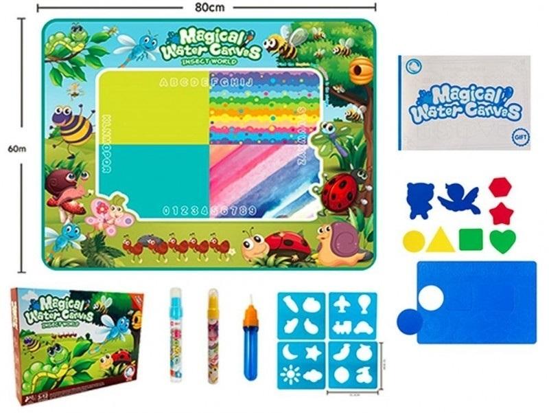 Mata do kolorowania wodnym pisakiem owady 80x60cm Mata do wielokrotnego użycia, uczy dziecko kreatywności. sposób użycia: