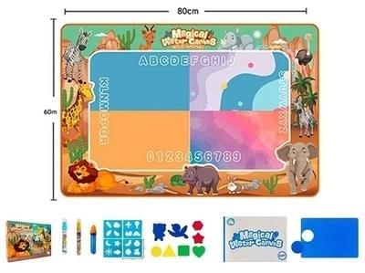 Mata do kolorowania wodnym pisakiem safari 80x60cm Mata do wielokrotnego użycia, uczy dziecko kreatywności. Sposób użycia: