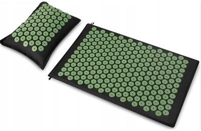 Zestaw do punktowego automasażu, składający się z poduszki i maty z kolcami-wypustkami, które poprzez ucisk na mięśnie, powodują uczucie rozluźnienia i złagodzenie ogólnego napięcia w ciele. Seans na macie stymuluje produkcję endorfin, poprawia ogólne samopoczucie i ujędrnia skórę. Dzięki zdejmowanym bawełnianym poszewkom, zestaw jest łatwy w czyszczeniu. Zapakowany w praktyczny worek.