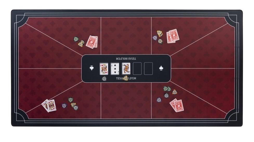 Wysokiej jakości mata pokerowa o wymiarach 180x90 cm wykonany z poliestru i gumy zapewnia stabilną oraz gładką powierzchnię do gry. Dzięki antypoślizgowej warstwie z gumy, nie przesuwa się podczas gry. Dzięki swojej dużej powierzchni, dywan zapewnia wystarczająco miejsca na wszystkie niezbędne akcesoria pokerowe, a jego trwała konstrukcja sprawia, że będzie służył przez długi czas.