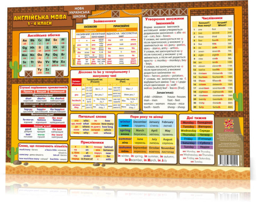 Mata edukacyjna do nauki języka angielskiego dla klas 1-4 A3 - to zasady, koncepcje i rzeczywiste przykłady użycia na cały okres nauki w szkole podstawowej w języku angielskim. Zawiera najważniejsze informacje do zapamiętania dla uczniów, a także jest wskazówką dla rodziców, którzy w takim czy innym stopniu pomogą młodym uczniom opanować naukę w szkole. Można ją położyć na biurku, umieścić w dogodnym miejscu tak, aby mieć ją przed oczami i w razie potrzeby łatwo i szybko znaleźć potrzebne informacje.