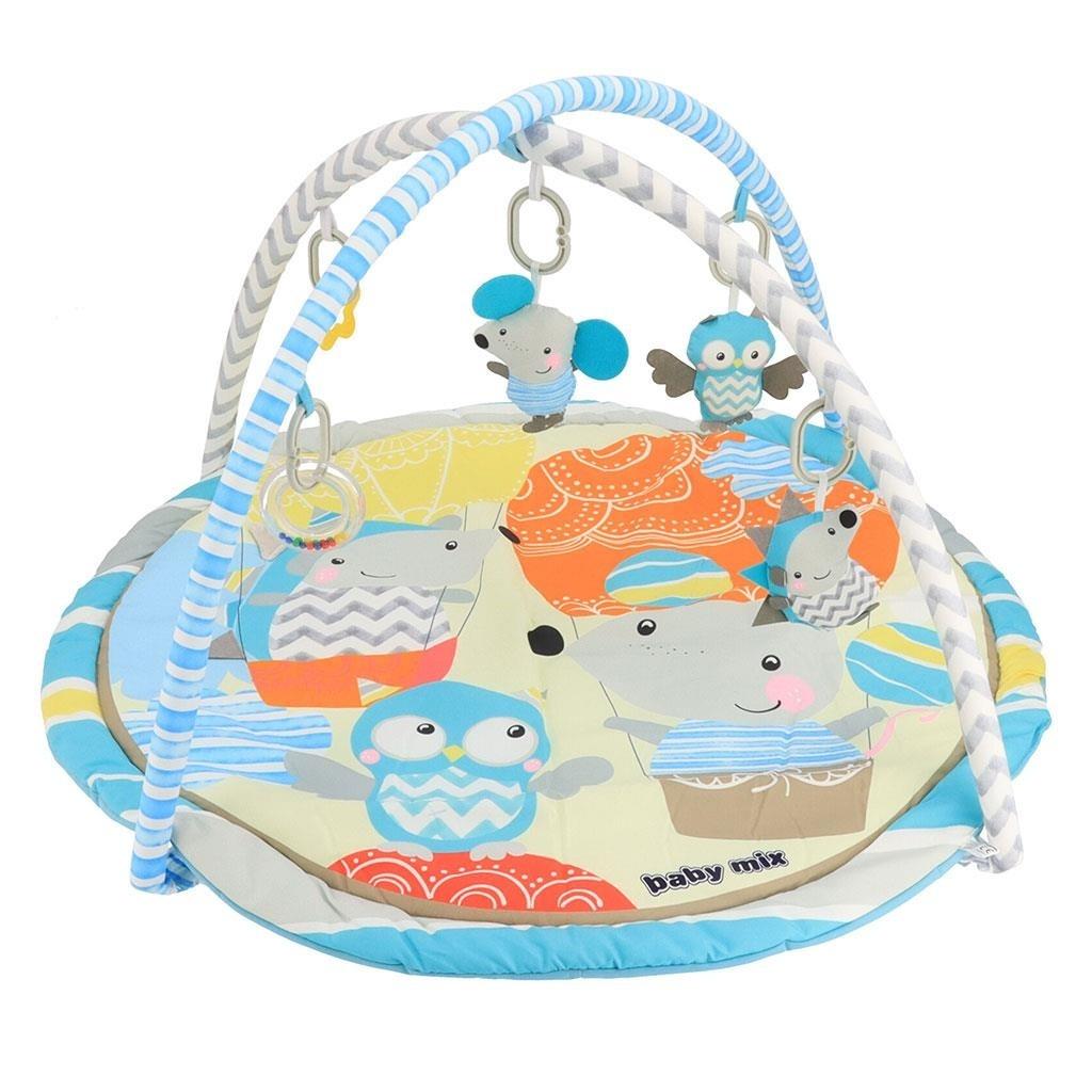 Piękna mata edukacyjna z pałąkiem z zabawkami umożliwia rozwój koordynacji wzrokowo-ruchowej, barwna mata przyciąga uwagę dziecka i uczy rozpoznawać kształty. Pluszowe zabawki oraz grzechotki zawieszone na pałąku umilą zabawę dziecku (możliwość odczepienia zabawek i używania ich poza matą).Mata edukacyjna została wykonana z dobrej jakości materiałów, zabawka przeznaczona jest dla niemowląt i małych dzieci, które nie porusają się samodzielnie.Mata edukacyjna zapewnia bezpieczną i przyjemną przestrzeń i stanie się ulubionym miejscem zabaw Twojego dziecka. Pałąk można odpiąć, podobnie jak zabawki. Przyjemny i miękki materiał pozwala wygodnie leżeć na brzuszku lub plecach i umożliwia dziecku swobodne poruszanie się. Matę prać na sucho w przypadku mocnych zabrudzeń a grzechotki i konstrukcję przecierać wilgotną szmatką.Wymiary: średnica 90 cm, wysokość 60 cm Odpowiedni dla dzieci od 3 miesięcy