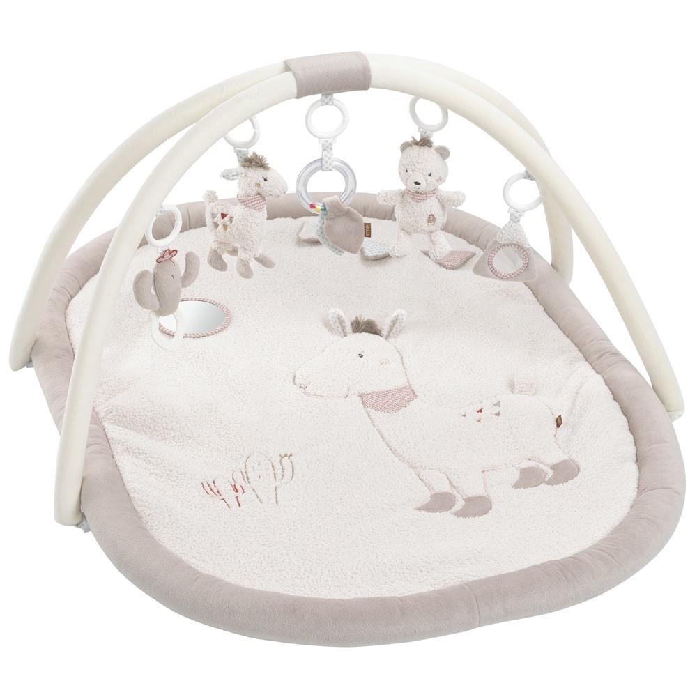 To idealny pierwszy plac zabaw dla maluchów. Wraz z Lamą , uśmiechniętym Misiem, pustynnym kaktusem i bezpiecznym lusterkiem do przeglądania, Twoje dziecko wyrusza na wielkie przygody i ekscytujące wyprawy do Machu Picchu z peruwiańskich Andów. Trójwymiarowa mata aktywacyjna może być używana jako płaski plac zabaw lub jako przytulne gniazdko. Duże lusterko jest absolutną atrakcją maty. Więc twoje dziecko nieświadomie obserwuje relacje między przyczyną i skutkiem. Miękkie materiały zapewniają bezpieczeństwo i optymalny komfort dziecka od samego początku. Urocze zabawki w łukach są łatwo dostępne. Pomagają wyszkolić zmysł dotyku dziecka i koordynację pierwszego kontaktu ręka-oko. Małe zabawki można łatwo wyjąć, bawić się nimi osobno lub przymocować w wielu miejscach, dzięki czemu zapewniają one rozrywkę w domu i w podróży. Miękki i wygodnie wyściełany kocyk oferuje wiele funkcji: lusterko, listki, maskotki, służą do pociągania, tarmoszenia ściskania i gryzienia. Tekstury i powierzchnie zachęcają do dotknięcia, przytulania i zabawy. Urocze detale chcą być badane przez twoje dziecko. Łuki są łatwe do zdemontowania, dzięki czemu dziecko może używać maty do zabawy, leżenia, raczkowania lub siedzenia, aż w końcu do zasypiania.