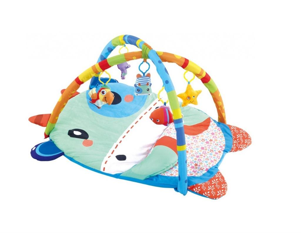 Niezwykłe centrum aktywności dla twojego bobasa! Mata edukacyjna to idealne miejsce do rozwoju każdego dziecka. Wprowadza go w świat kolorów, kształtów i dźwięków. Będzie pomagać w prawidłowych rozwijaniu dziecka przez długi czas! Fantastyczna i wyjątkowa kolorystycznie mata, zachwyca pastelowymi kolorami i mięciutkimi zabawkami w kształtach różnych zwierzątek. Mata wykonana jest z wysokiej jakości materiałów i w przyjemnych pastelowych kolorach. Zabawki wykonane są z wysokiej jakości plastiku i materiału, 100% nieszkodliwego dla małego dziecka. Bezpieczne dla dzieci w każdym wieku - przedział wiekowy 0+. Stylowe mięciutkie zabawki wykonane są z pluszu i pewnością przykują uwagę dziecka: między innymi krówka, rybka, konik morski czy tukan. Dziecko zacznie się uczyć czynności manualnych i sięgać po interesujące go kolorowe zabawki. Przy normalnym stosowaniu produkt czyścimy wilgotną szmatką. Mata edukacyjna zapakowana jest w ładne pudełko, idealnie nadające się na prezent z okazji chrztu lub narodzin.