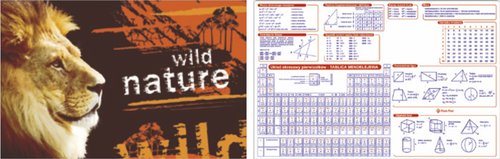-kolorowy plakat pokryty obustronnie wysokoprzezroczystą folią -druga strona posiada wydrukowane schematy wzorów geometrycznych,matematycznych,układ pierwiastków