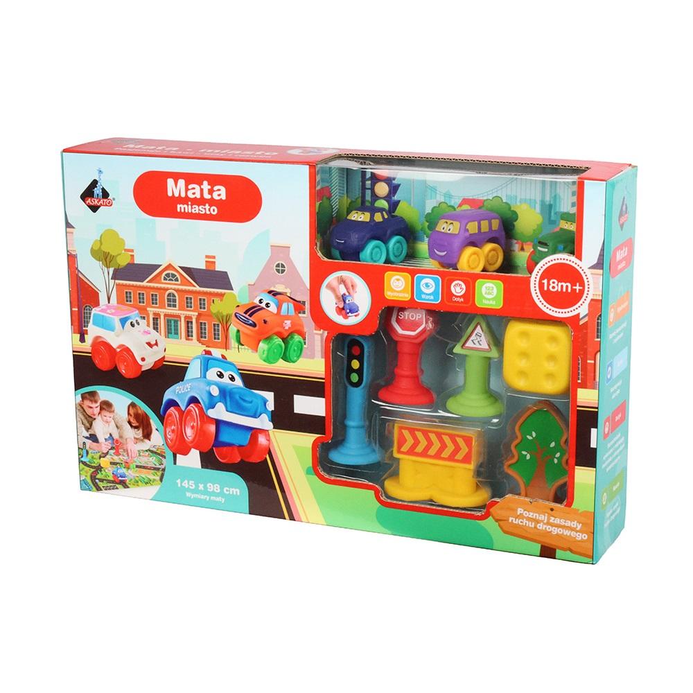 Mata - miasto z miękkimi pojazdami to doskonały wybór! Dzięki dużej powierzchni, dziecko może poznawać zasady ruchu drogowego, bawiąc się miękkimi samochodzikami, znakami drogowymi oraz innymi elementami zestawu. Zestaw zawiera miękkie samochody, znaki drogowe, drzewo, barierkę oraz miękką kostkę.