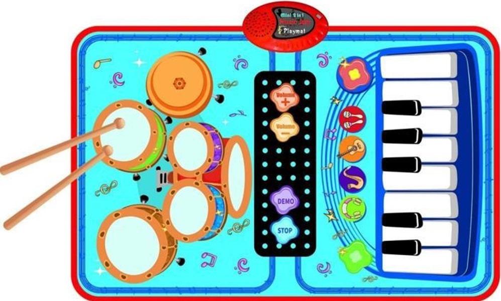 Kolorowa mata muzyczna dla dzieci. Mata jest wrażliwa na dotyk. Posiada wbudowane dźwięki instrumentów, regulację głośności . Wymiar maty po rozłożeniu: 70x45 cm Zabawka działa na baterie typu AA. Baterie nie są załączone do zabawki. Zabawka zapakowana w kartonowe opakowanie. Podane wymiary są wymiarami opakowania.