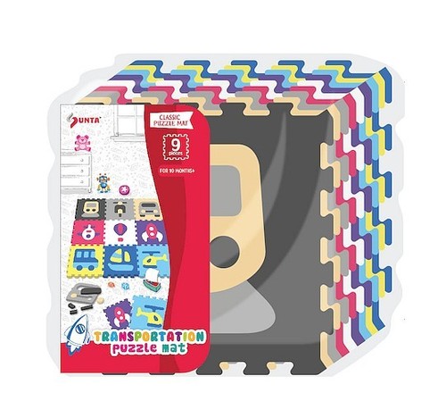 Układanka z wyjmowanymi kształtami może być używana jako mata oraz jako puzzle do układania. Jest zrobiona z miękkiej pianki, przyjaznej w dotyku. Mogą też posłużyć jako podkładka przy innych zabawach czy drzemce. Zabawka uczy: spostrzegawczości, rozpoznawania kolorów i kształtów, budowania figur przestrzennych, zabawy z wyobraźnią. Pomysły jak można bawić się puzzlami: połącz z dzieckiem wszystkie elementy i opowiedz, co się na nich znajduje. Zbuduj z puzzli figury przestrzenne, np. kostkę lub pudełko i wymyślcie wspólnie, jak można się nimi bawić. Zrób z nich stolik. Jest wiele możliwości zabawy, ogranicza was jedynie wasza wyobraźnia. Dla dzieci w wieku od 10 miesięcy
