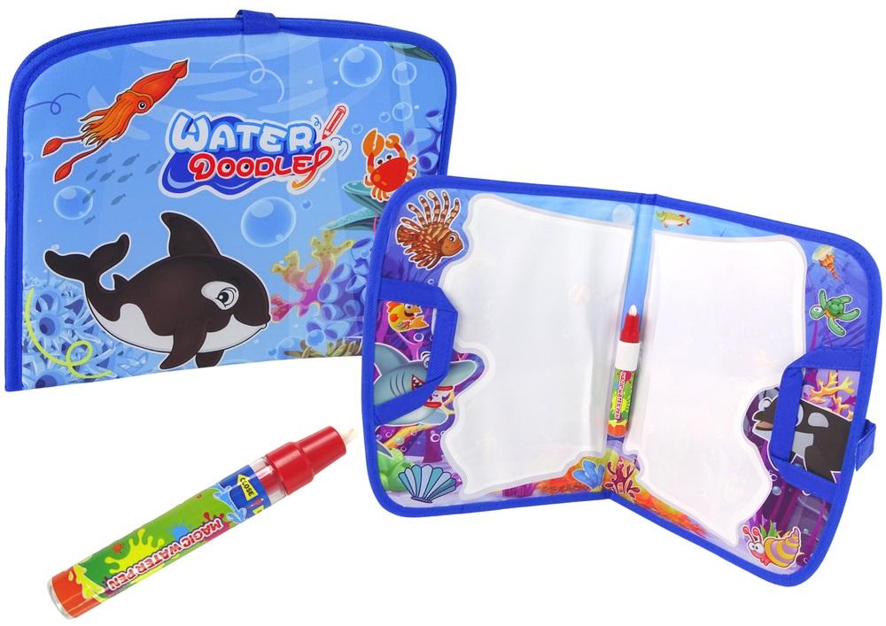 Mata Wodna Do Rysowania Water Doodle + Pisak Wodny Zabawa Bez Końca ! Składana w teczkę i zapinana na rzep. Z rączką do przenoszenia. Zasada działania maty wodnej składanej w teczkę jest niezwykle prosta - zwilżony wodą materiał sprawia, że uwidaczniają się na nim kolory. Po napisaniu czegoś wodnymi pisakami wzory pozostaną wyraźne przez kilka minut po czym znikną. Dzięki temu, odpowiednio przechowywaną matę można używać w nieskończoność! Sposób korzystania z pisaków wodnych: Odkręć końcówkę pisaka, Nalej do niego wody ,Dokładnie zakręć końcówkę , Maluj! Mata jest lekka, poręczna i składana, dzięki czemu bez problemu można zabrać ją do ogrodu, parku, przedszkola, koleżanki czy kolegi, a także na wycieczkę lub wczasy. Spód jest wodoodporny, więc można ją położyć np. na wilgotnej trawie. Po zwinięciu zajmuje bardzo mało miejsca, wobec tego jest łatwa w przechowywaniu nawet w pokoju o niewielkim metrażu. Mata może służyć do zabawy samodzielnej, jak i z dorosłymi, a także do zabawy w większym gronie. Mata nadaje się znakomicie na prezent zarówno dla chłopców, jak i dziewczynek. Z pewnością wywoła uśmiech na niejednej buzi! Mata wodna to doskonały wybór dla Twojego dziecka. Jest trwała, wykonana z bezpiecznych i ekologicznych materiałów. Wymiary opakowania: 29 cm x 23 cm x 3 cm Zabawki są całkowicie bezpieczne dzięki solidnej konstrukcji i odpowiedniemu wykończeniu .