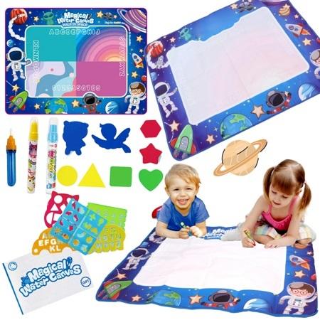 Wielofunkcyjna mata wodna z motywem kosmosu to fascynująca zabawka, która zapewnia dzieciom niezapomnianą przygodę tworzenia pięknych obrazków bez użycia farb czy kred. Ta innowacyjna mata do malowania nie tylko sprawia, że proces staje się przyjemny, ale także utrzymuje czystość i porządek wokół siebie.
