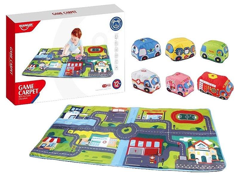 mata z ulicą i autami z materiału, wym.rozłożonej 158x80cm; 35x27x5cm, Box