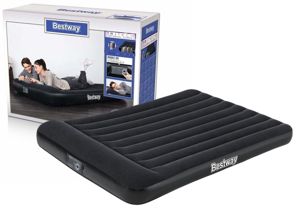 Dmuchany Materac Z Pompką 203 x 152 x 30 cm Bestway 67464 Dwuosobowy materac turystyczny przeznaczony jest do użytku zarówno wewnętrznego jak i zewnętrznego. Został wykonany z wytrzymałego materiału, dzięki czemu jest odporny na uszkodzenia. W swojej górnej części pokryty jest miękkim flokowanym materiałem. Materac dopasowuje się do ciała i idealnie sprawdzi się pod namiotem lub w domu jako zapasowe łóżko dla gości. Dzięki wbudowanej pompce materac zostanie samoczynnie napompowany w 3 minuty, co będzie dla Ciebie wygodnym rozwiązaniem. Wewnętrzna konstrukcja tego łóżka jest wykonana z materiału Tritech , który zapewnia trwałość i wytrzymałość, a jednocześnie pozwala materacowi zachować ten sam kształt bez względu na to, ile razy jest napompowany i opróżniony. W zestawie znajduje się: - materac z wbudowaną pompką - torba transportowa - zestaw naprawczy - Dane techniczne: - Wymiary 203 cm x 152 cm x 30 cm - Maksymalne obciążenie 300 kg - Zawór bezpieczeństwa - Wbudowana pompka 220-240V dzięki czemu materac jest napompowany już w 3 minuty - komfortowa miękka powierzchnia pokryta materiałem Waga: 6 kg Wymiary opakowania: 39 cm x 15 cm x 31 cm