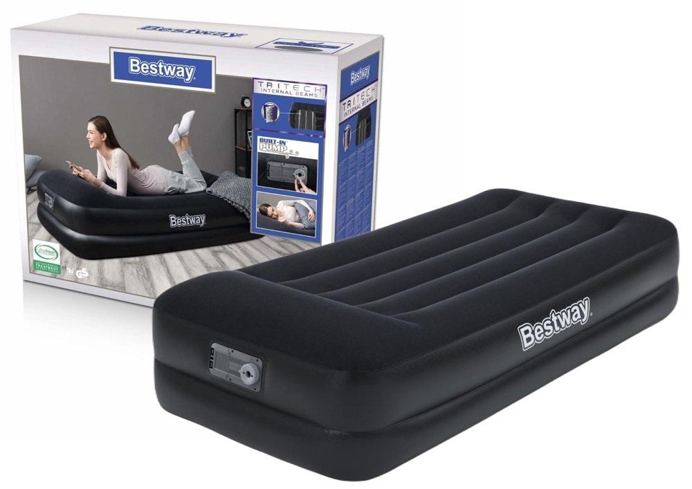 Dmuchany Materac Z Pompką 191 x 97 x 46 cm Bestway 67401 Materac turystyczny przeznaczony jest do użytku zarówno wewnętrznego jak i zewnętrznego. Został wykonany z wytrzymałego materiału, dzięki czemu jest odporny na uszkodzenia. W swojej górnej części pokryty jest miękkim flokowanym materiałem. Materac idealnie dopasowuje się do ciała. Dzięki wbudowanej pompce materac zostanie samoczynnie napompowany w 4 minuty, co będzie dla Ciebie wygodnym rozwiązaniem. Dzięki wygodnej powierzchni do spania i solidnej konstrukcji oraz wbudowanej poduszce Wewnętrzna struktura tego łóżka jest wykonana z materiału Tritech, który zapewnia trwałość i wytrzymałość, a jednocześnie pozwala materacowi zachować ten sam kształt bez względu na to, ile razy jest napompowywany i opróżniany..Rano zawór śrubowy szybkiego odpowietrzania umożliwia łatwe spuszczenie powietrza.Wystarczy umieścić spłaszczony materac w dołączonej torbie transportowej, aby ułatwić transport i przechowywanie. Skład zestawu: -Materac z wbudowaną pompką - torba transportowa - zestaw naprawczy Dane techniczne: - Wymiary 191 cm x 97 cm x 46 cm - Maksymalne obciążenie 150 kg - Jednoosobowy - Zawór bezpieczeństwa - Wbudowana pompka 220-240 V dzięki czemu materac jest napompowany już w 4 minuty - komfortowa miękka powierzchnia pokryta materiałem - Konstrukcja Y-beam - wytrzymały materiał - wbudowana poduszka Waga: 7 kg Wymiary opakowania: 39 cm x 14 cm x 31 cm