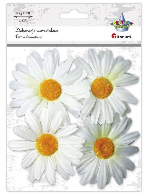 Opakowanie Materiałowe margerytki 3D 75mm białe 4szt