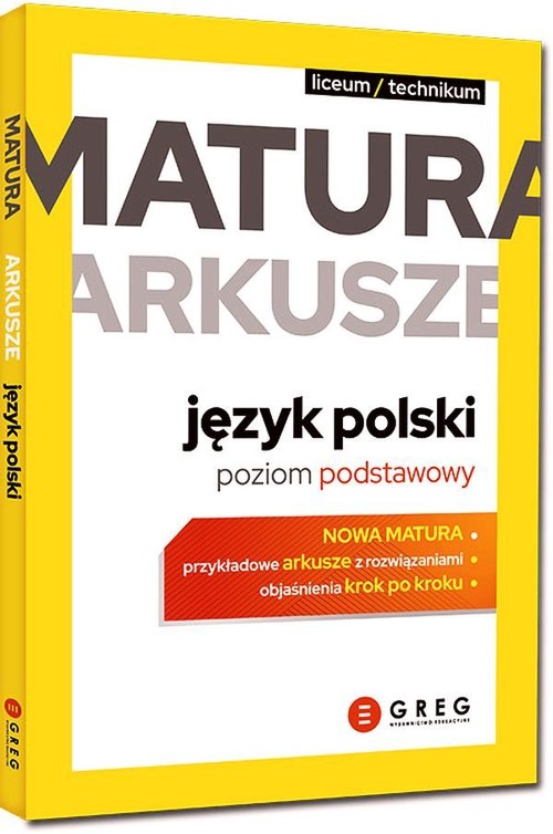 Zdaj maturę z języka polskiego bez stresu z najnowszymi arkuszami od Wydawnictwa GREG! Aktualne wydanie jest w pełni zgodne z obowiązującymi obecnie wymaganiami maturalnymi na poziomie podstawowym, więc masz gwarancję, że przećwiczysz dokładnie ten materiał, który pojawi się na maturze!