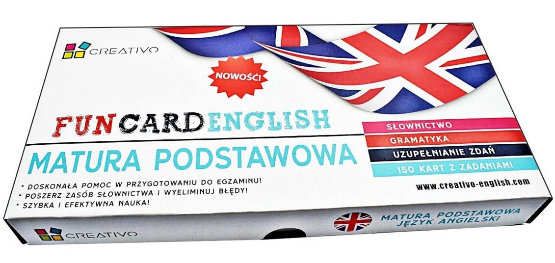 Karty zostały stworzone do powtórek przed egzaminem maturalnym. W zestawie znajduje się 150 dwustronnych kart (3 talie po 50 kart). Na odwrocie znajdują się odpowiedzi do zadań. Zadania podzielone są na 3 kategorie grammar, vocabulary i gap-fill. Karty mogą służyć jako fiszki lub jako ekscytująca gra do nauki języka angielskiego z użyciem 3 specjalnych kostek.