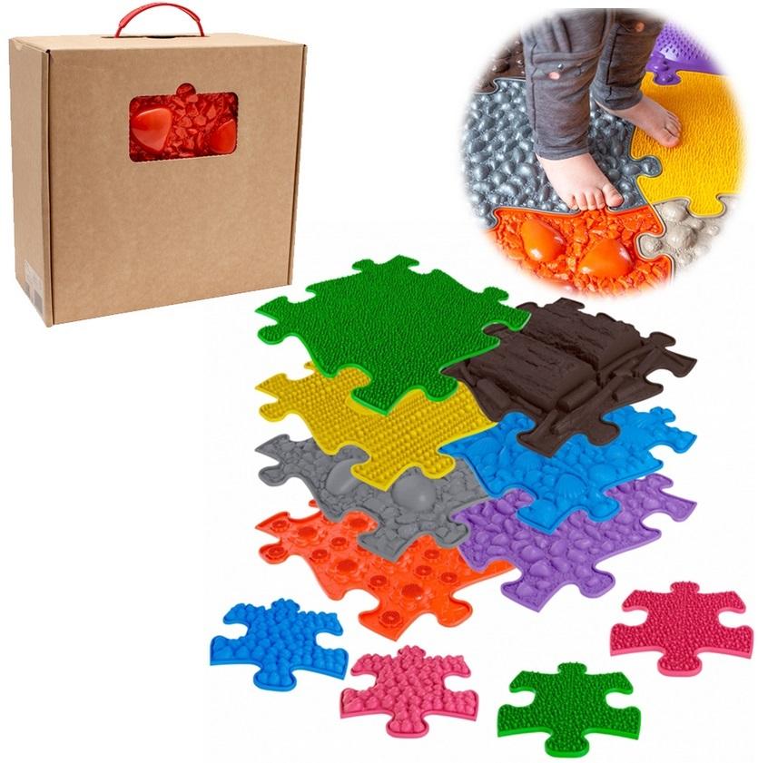 Miękkie puzzle służą do delikatnej stymulacji i masażu stóp. Zapewniają ulgę zmęczonym stopom i aktywują nieużywane mięśnie. Twarde powierzchnie pomagają rozgrzać stopy, nasilają uczucie chodzenia po podłodze, wzmacniają mięśnie i zwiotczałe kostki. Moduł z pniem drzewa nadaje się do wzmocnienia środka ciała, dla lepszej równowagi i ogólnej stabilności.