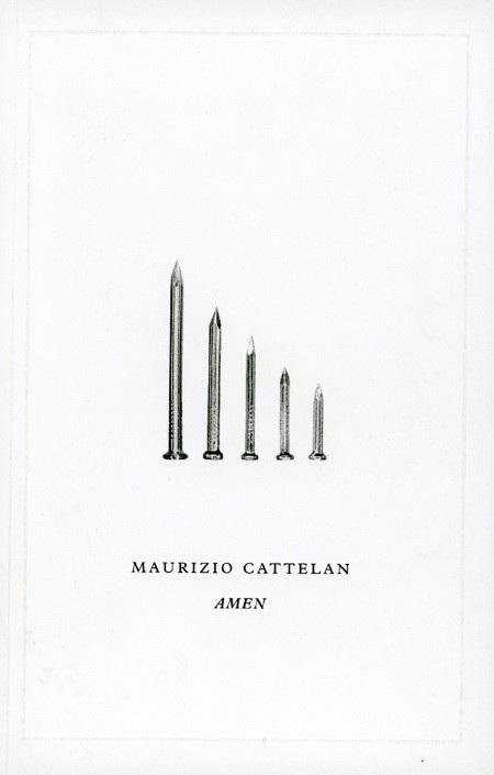 Czy prace Maurizio Cattelana wymagają komentarza? Raczej wymagają milczenia, które pozwoli im do nas przemówić własnym językiem. Dlatego celem nie było pisanie o pracach artysty, ale wskazanie perspektyw, które ujawnią ich znaczenie teologiczne, filozoficzne i polityczne. W książce znajdziemy m.in. fragmenty dzieł Zygmunta Baumana, Jeana Baudrillarda, Gottfrieda Wilhelma Leibniza, Leszka Kołakowskiego, pieśń Jacka Kaczmarskiego, eseje Roberta Piłata i Józefa Majewskiego, rozmowę z Zofią Rosińską, fragmenty orędzia biskupów polskich do biskupów niemieckich, wiersze Percy'ego Shelleya i Wisławy Szymborskiej.