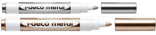 Mazak złoty i srebrny do artystycznego dekorowania różnych powierzchni m.in. drewna, szkła, ceramiki, skóry, gumy, tworzyw sztucznych, metali, marmurów, granitów etc. Doskonały do płyt CD/DVD, niezmywalny z powierzchni matowych. Tusz, produkowany na bazie wodnej, nietoksyczny, mocno kryjący, odporny na światło z głębokim kontrastem na ciemnych powierzchniach, zmywalny z rąk, Przed wyschnięciem narysowany wzór można skorygować wilgotną szmatką. produkcja Fibracolor Włochy,