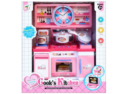 Zestaw zawiera cały aneks kuchenny wraz z wielona akcesoriami potrzebnymi do gotowania. Piekarnik przy kuchence otwiera się. Produkt wykonany z plastiku. Przeznaczony dla dzieci od 3 lat.
