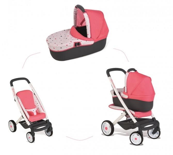 Wielofunkcyjny wózek 3w1: gondola, spacerówka i wózek głęboki. Łatwy w montażu, zgodny z oryginalnym wzornictwem Maxi Cosi. Metalowa konstrukcja, gumowe, skrętne koła, ergonomiczne uchwyty, koszyk na drobiazgi. Przeznaczony dla lalek do 42 cm (brak lalki w zestawie).