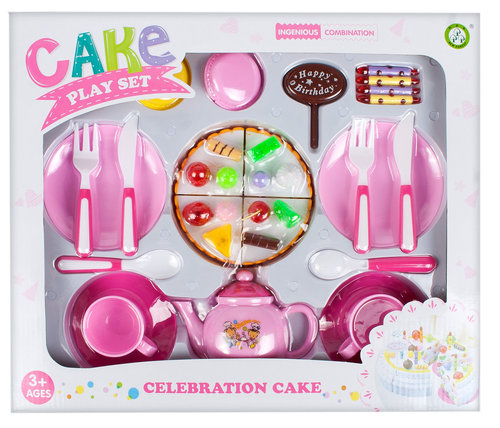 Zestaw ten zawiera 21 elementów takich jak: filiżanki, talerzyki, sztućce, świeczki do tortu, tort oraz dzbanek na herbatę. Całość wykonana z plastiku. Przeznaczona dla dzieci w wieku: 3+.