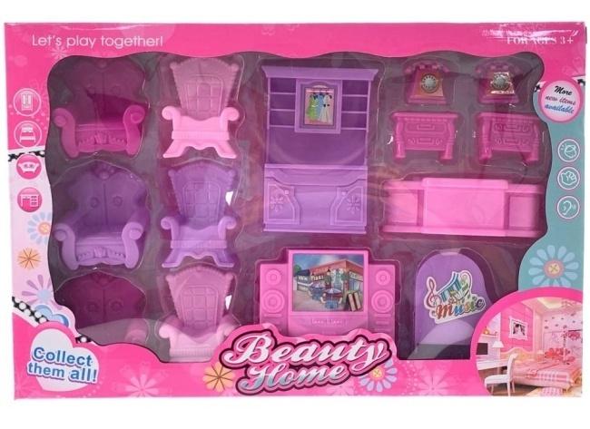 Przenieś świat wyobraźni swojej pociechy na wyższy poziom dzięki temu uroczemu zestawowi mebelków do domku dla lalek "Beauty Home"! W eleganckim, różowo-fioletowym kolorze, ten bogaty zestaw zawiera różnorodne elementy wyposażenia, które pozwolą na stworzenie przytulnego i stylowego salonu oraz sypialni dla ulubionych lalek. W zestawie znajdziesz wygodne sofy i fotele, stylowy stolik, łóżko z ozdobnym wezgłowiem, toaletkę z lustrem, a nawet urocze akcesoria takie jak telefon. Wykonane z bezpiecznego i trwałego plastiku, mebelki są idealnie dopasowane do małych rączek i zachęcają do kreatywnej zabawy w odgrywanie ról. Zestaw "Beauty Home" nie tylko zapewnia wiele godzin wciągającej zabawy, ale także rozwija wyobraźnię, umiejętności społeczne i koordynację wzrokowo-ruchową dziecka. To doskonały pomysł na prezent, który z pewnością wywoła uśmiech na twarzy każdej małej dziewczynki. Zachęcamy do zebrania całej kolekcji mebelków "Beauty Home", aby stworzyć kompletny i wymarzony domek dla lalek!
