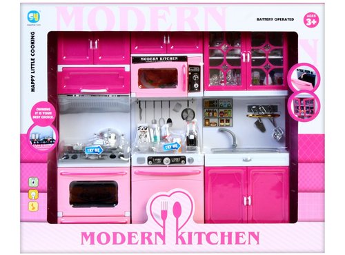 Zaprojektuj wolną przestrzeń. Ustawiaj, przestawiaj mebelki według własnych upodobań. Mebelki kuchenne marki Mega Creative to nieograniczone możliwości projektów! Zestaw zawiera: kuchenkę z piekarnikiem, zmywarkę, zlew, kuchenkę mikrofalową, szafki kuchenne i wiele innych akcesoriów kuchennych. Produkt wykonany z plastiku. Przeznaczony dla dzieci od 3 lat. Wymaga zasilania bateriami 3xLR44 (załączono) Wymiary opakowania (dł.x wys.x gł.) [cm] 44x36x9