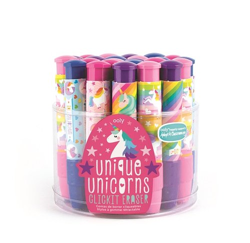 Piękne jednorożce są ozdobą tych mechanicznych gumek, które zapewnią magiczne wycieranie. Wyjątkowe Mechaniczne Gumki do Ścierania Jednorożce są prostym, zabawnym i uroczym sposobem na usuwanie głędów ołówkiem. Mechaniczne Gumki do Ścierania Jednorożce to po prostu jedna duża gumka zamknięta w plastikowej oprawie. Wystarczy kilka kliknięć, aby użyć gumki. Mechaniczne Gumki do Ścierania Jednorożce są dostępne w 4 stylach i kolorach. Tuba display zawiera 24 gumki, 6 z każdego koloru. Mechaniczne Gumki do Ścierania Jednorożce Gumka mechaniczna w oprawie. 4 kolory i obrazki jednrożców na oprawie. Rozmiar displaya: 11,4 cm x 11,4 cm x 11,4 cm