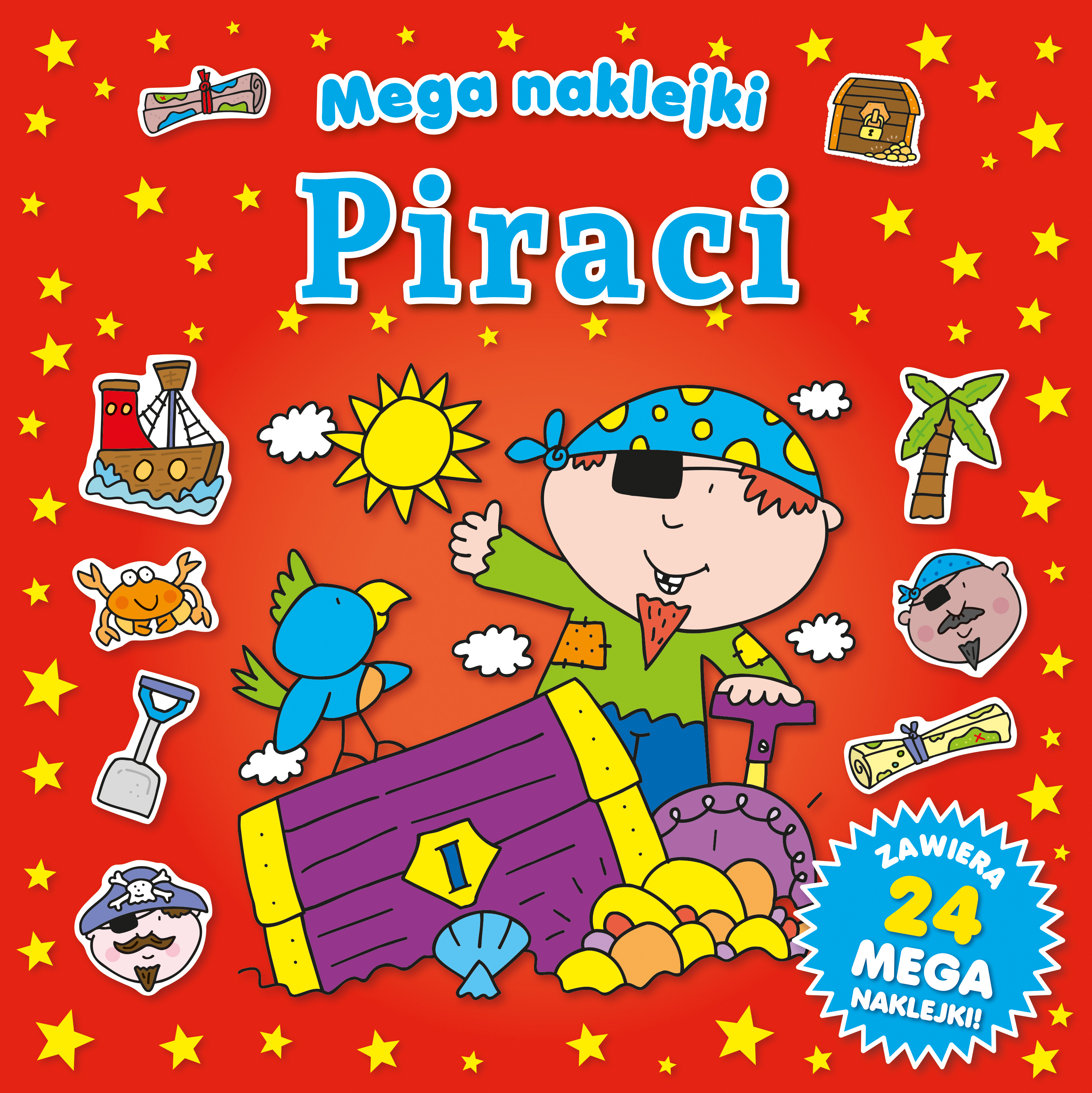 Książeczka z dużymi naklejkami i zabawnymi rysunkami do kolorowania to gwarancja wspaniałej zabawy wśród piratów.