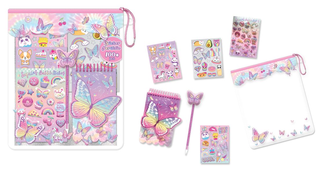 Mega zestaw naklejek z długopisem w saszetce Motylki